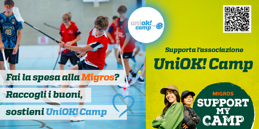 UniOK! Camp, dal 21 al 26 giugno 2026, è un Camp di unihockey per tutti i ragazzi e le ragazze residenti nel Cantone Ticino in età compresa 2010 - 2016.